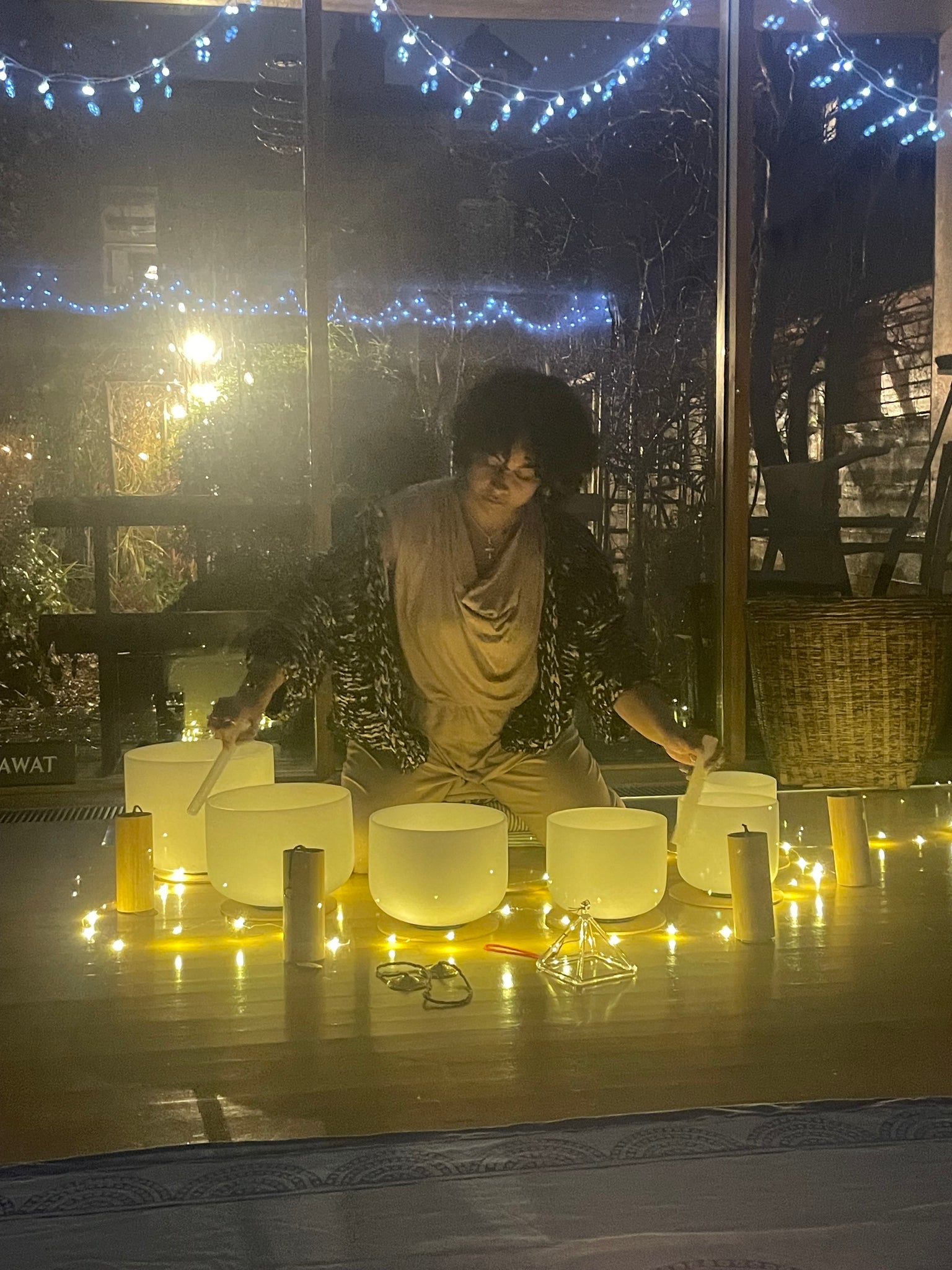 Starting with gentle relaxation, the healing practitioner will ease you the journey of sound using a wide variety of instruments such as chimes, rattles, bells, rain sticks, and drums followed by crystal bowls and our gong to bring mind, body, emotions and soul into a state of balance, peace and harmony.